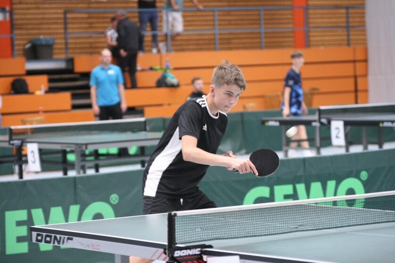 Gleich früh morgens musste Mats an den Tisch und hatte sein erstes Spiel gegen den späteren Vizemeister. Aber auch der spätere Meister war Teil seiner Gruppe. Diese beiden Spiele gingen verloren, aber ansonsten konnte Mats alle Spiele in seiner Gruppe gewinnen und belegte einen guten 3. Platz in seiner Gruppe. Leider kamen nur die ersten beiden einer Gruppe in die K.O. Phase.